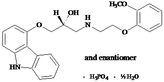 【化学名称】: 1-(9H-咔唑-4-基氧基)-3-[2-(2-甲氧基苯氧基)乙基氨基]-2-丙醇磷酸盐(1:1)半水合物